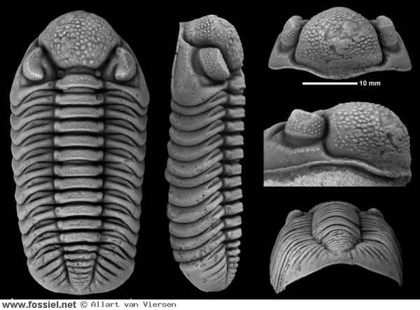 Deze trilobiet genoot een toenemende bekendheid onder de naam "smiley Phacops" en is onlangs toegekend aan een nieuw genus en soort, Adrisiops weugi. Soorten van Adrisiops worden gevonden in het Emsiaan en Eifeliaan van Marokko en Algerije. Op de foto staat het holotype.