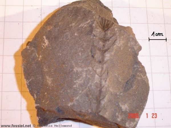 Zeer zeldzame vondst. Dit fossiel is een van de vele twijgjes van Calamites sp. Men onderscheidt de soort Asterophyllites van de annularia doordat de fijne blaadjes van dit genus in een symmetrische vorm in de takken ingeplant staan en slechts 1-nervig zijn.