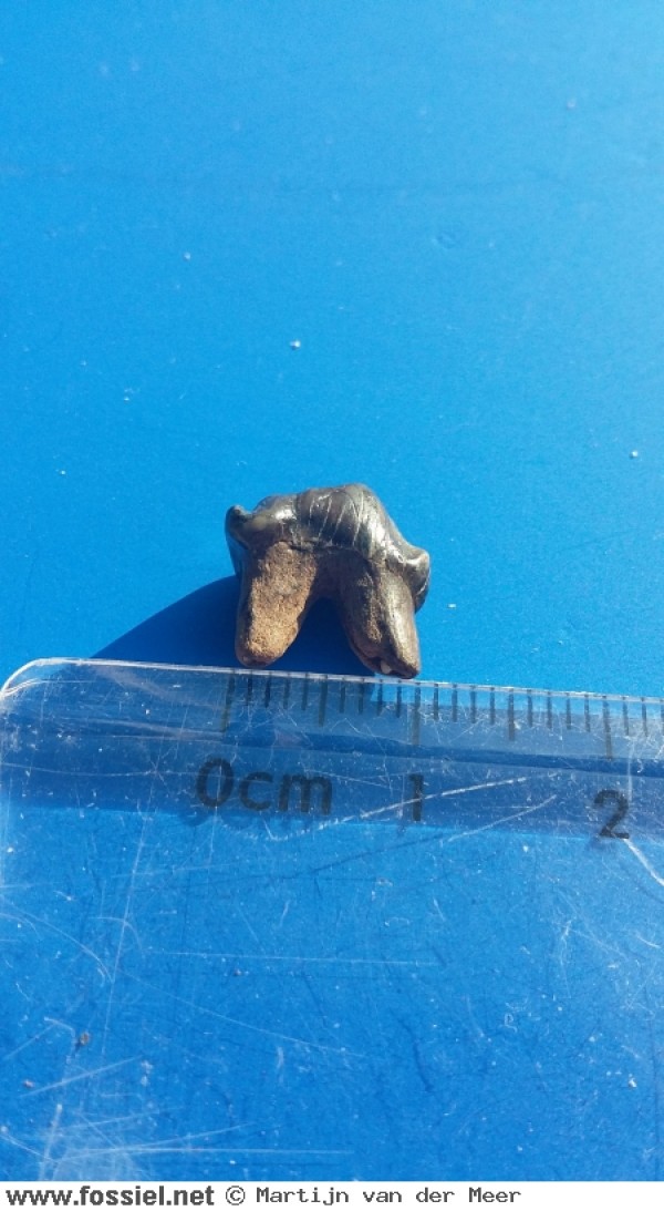 Dit is een voorste kies (P2) uit de onderkaak van een ree.