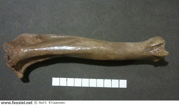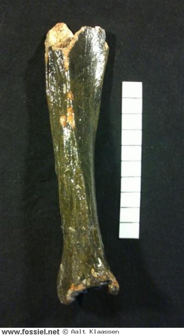 Distaal tibiafragment (scheenbeen) van een grottenhyena.