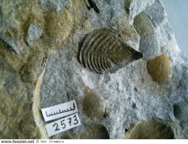 Een pygidium van een Digonus. Ook het negatief is in mijn collectie. Gevonden in grindgroeve Janssen te Arcen, Noord-Limburg.