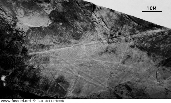 Narrabeen Group, Illawarra Coal Measures; zwart-wit hoog-contrast foto om beter de nervatuur te laten zien.