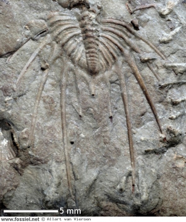 Dit is het holotype van Heliopyge helios, bewaard in de oude Maillieux collecties van het KBIN in Brussel. Heliopyge is zeldzaam. Zelfs zo zeldzaam dat dit genus in de gehele Ardennen en Eifel uitsluitend bekend is uit Nismes. Kenmerkend zijn de extreem lange staartstekels en de fenestrae (grote, langwerpige openingen in de pleurale velden van het staartschild).