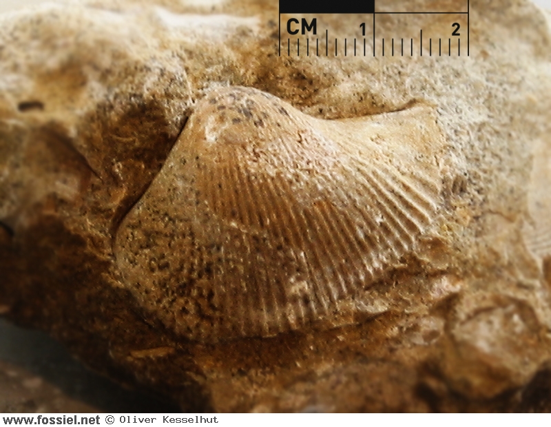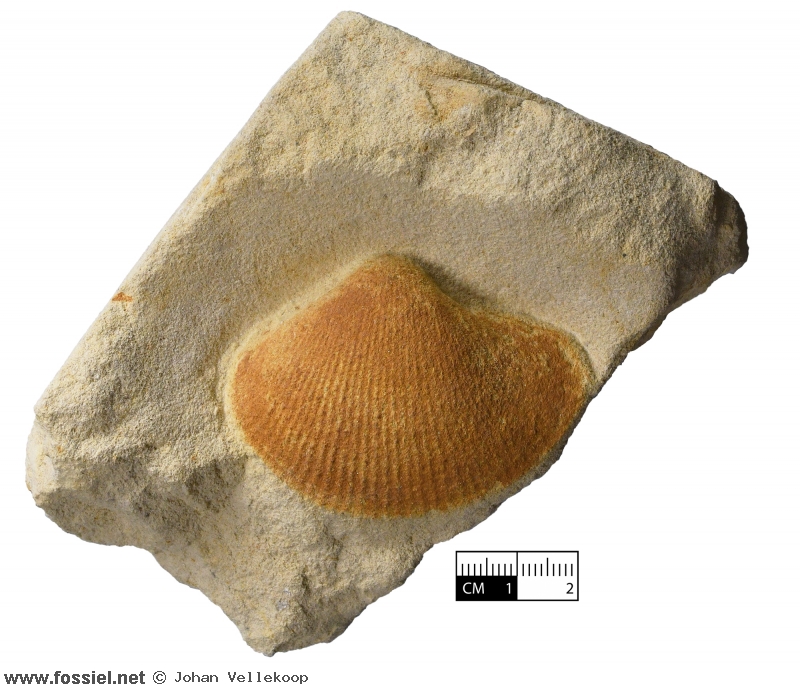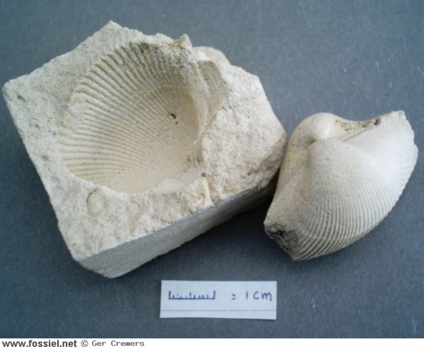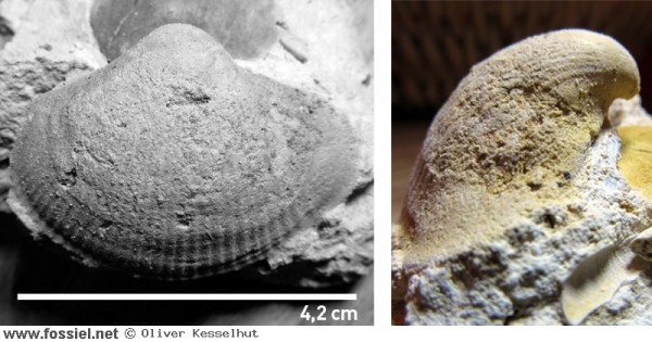 Een mooie steenkern van deze tot 10 cm groot wordende tweekleppige uit de Horizont van Laumont.