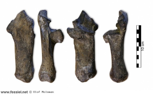 Rechter calcaneus (hielbeen) van een Reuzenhert.