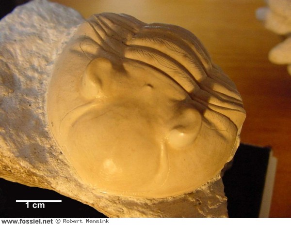 Opgerolde trilobiet, nog half ingebed in Ordovicische kalksteen. Literatuur: Staringia nr. 2, plaat 59.