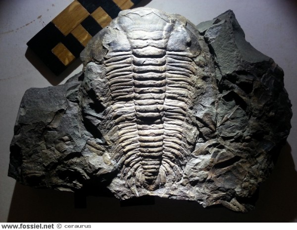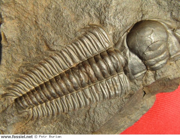 Delen (cephala and thorax). Delen van vervellingen. Bekende trilobiet uit het Barrandium. Paradoxides heeft 20 thorax-segmenten.