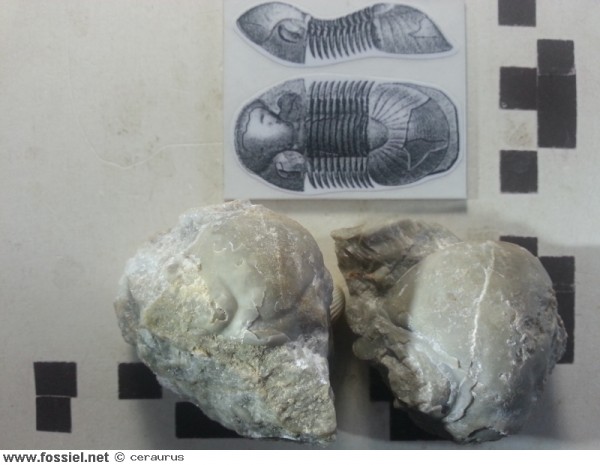 2 cephala, de soort is als 'compleet' stuk zeer bekend uit Marokko.