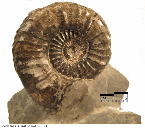 De Ammoniet was voorzien van een witte schaal die echter zwaar beschadigd was. Ik heb daarom gekozen deze te verwijderen.