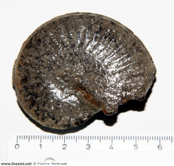 ca 35 sikkelvormige ribben, zeer kleine navel verhouding navel/gehele fossiel ca 0,15.