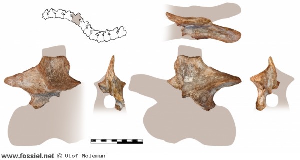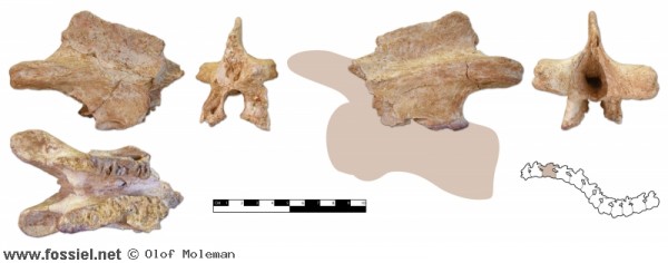 Nek wervel stuk van een Spinosaurus-achtige Dinosaurus.