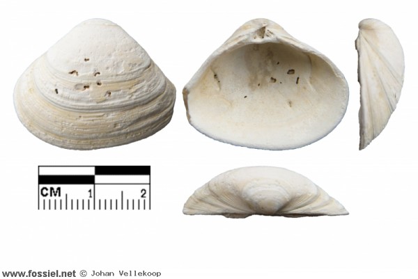 Recente exemplaren van deze soort zijn zeer algemeen langs de Nederlandse stranden. Dit exemplaar is niet doorschijnend/duidelijk gerekristalliseerd en waarschijnlijk van Pleistocene ouderdom.