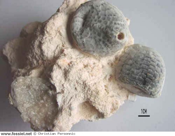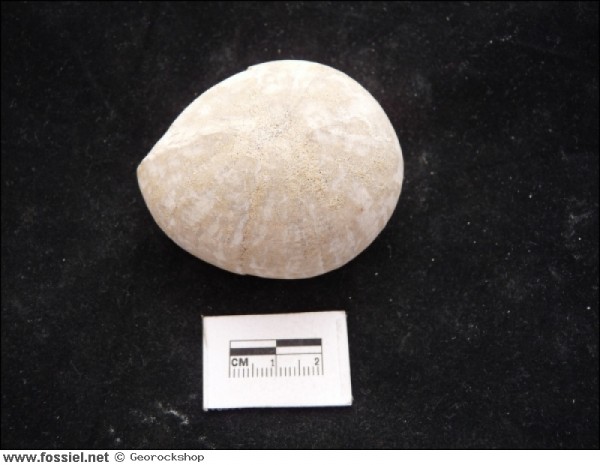 Vuursteenkern van de zeeegel Echinocorys. Diameter: 4,8 cm