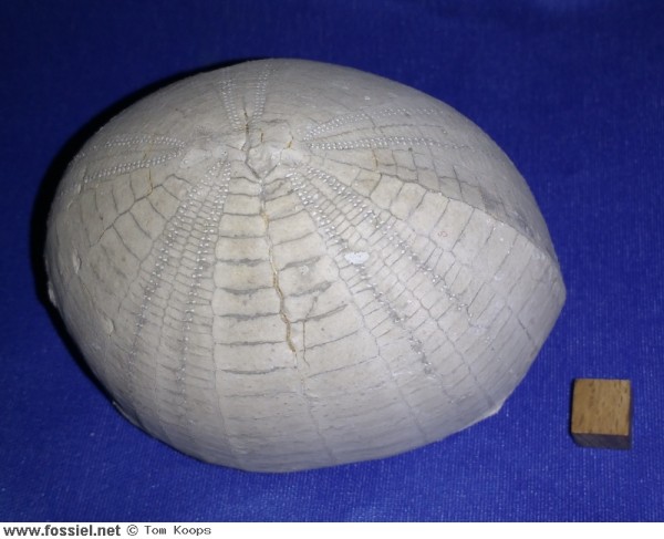 Een relatief groot exemplaar, gevonden door Eric Veenstra. Voor Coesfeld is de iets meer gedrongen Echinocorys humilis de meest algemene zee-egel; bij dit exemplaar kies ik vooralsnog voor E. vulgaris.