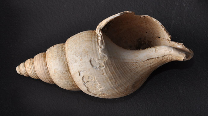 Voorbeeld van een gastropode als steenkern bewaard. De oorspronkelijke schaal is weg.