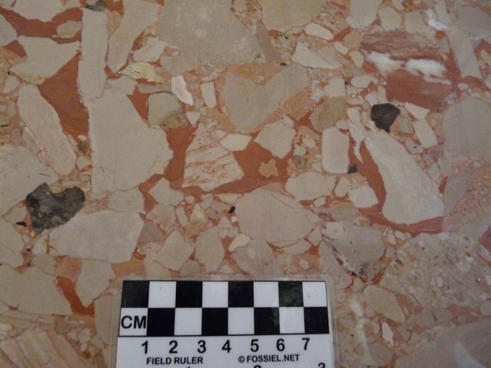 Gepolijste breccie met duidelijke hoekige componenten. Foto: Herman Zevenberg.