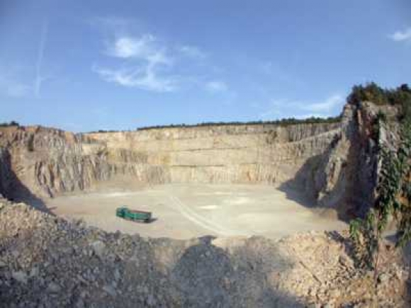 In een groot gebied rond deze groeve is ook langs de wegen vaak deze kalksteen met fossielen terug te vinden.