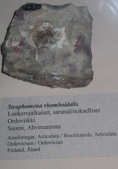 Brachiopode uit Aland in het Universiteitsmuseum in Helsinki © Foto: Olli Manninen