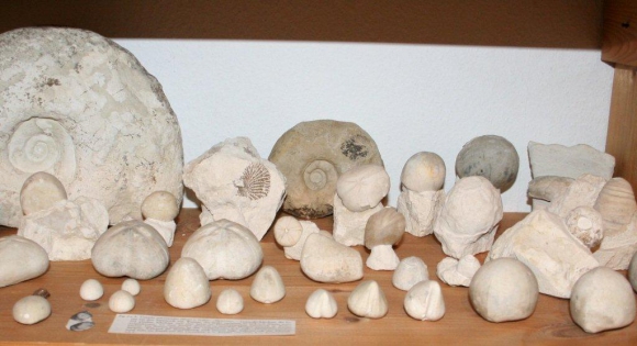 Zee-egels (voornamelijk Conulus en Micraster), ammonieten, gastropoden en bivalven.