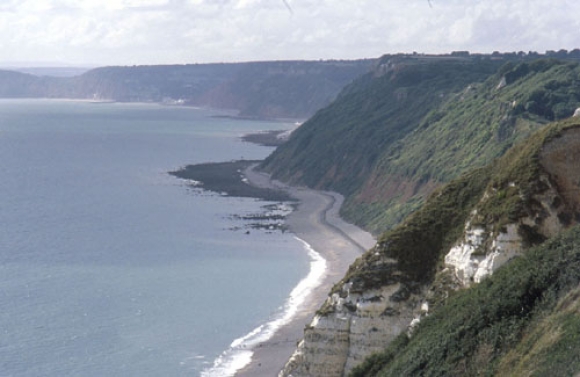 Neem de A39 naar Lynmouth. Nabij de kabelbaan die de heuvel opgaat, is er toegang tot het strand. De zandsteen afgewisseld met zachtere lagen komt uit het Devoon tijdperk en bevat fossielen van bivalven, brachiopoden en bryozoa. - Seaton