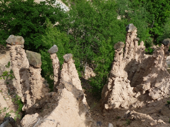 Deze zijn ontstaan doordat het zachte gesteente snel erodeerde door regenval. Op plekken waar grotere (andesiet) blokken aanwezig waren werd de erosie door de steen gestopt. De torens zijn vervolgens ontstaan doordat alle omringende materiaal is weg geërodeerd. Het is geologisch gezien een zeer recent verschijnsel.