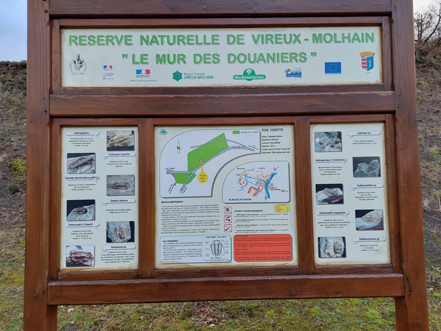 De beroemde vindplaats 'Mur du douaniers' in Vireux (Noord Frankrijk), is nu reeds meer dan 15 jaar gesloten om de vindplaats te beschermen. Hier werden in het verleden trilobieten gevonden uit het onder-eifeliaan (onderdeel van het Midden-Devoon tijdperk).