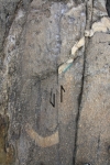 Een sinistrale breuk (de beweging heeft langs het breukvlak naar links plaats gevonden, gezien vanaf de andere kant van de breuk). Dit is erg mooi en duidelijk zichtbaar bij deze kwartsader. Er zijn in de granieten aan de kust van Roses meerdere geologische verschijnselen te zien (met name breuken).